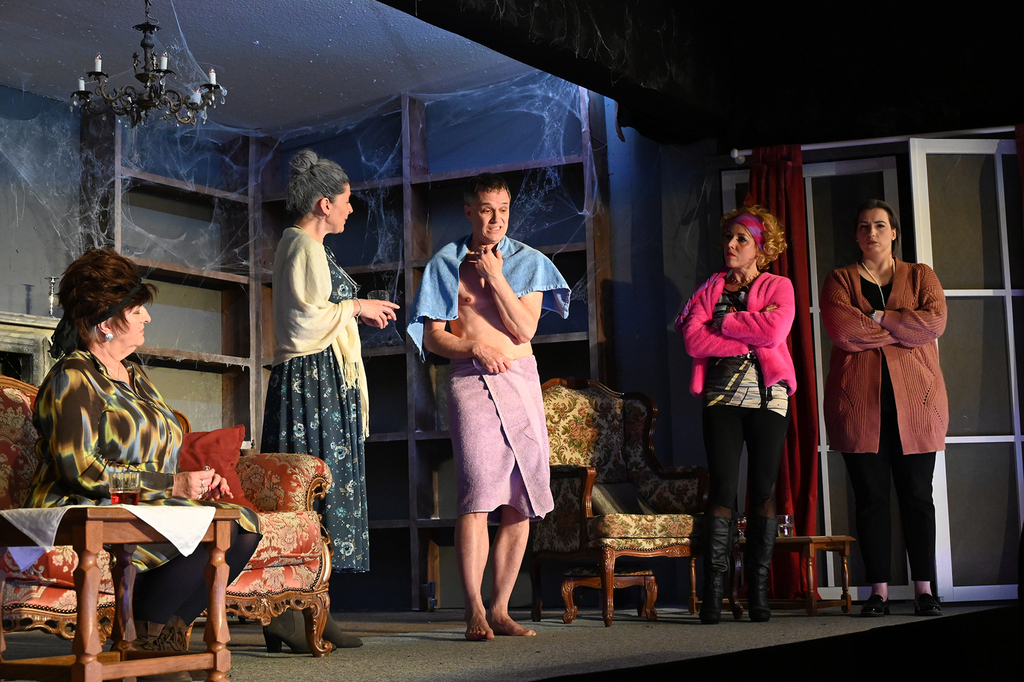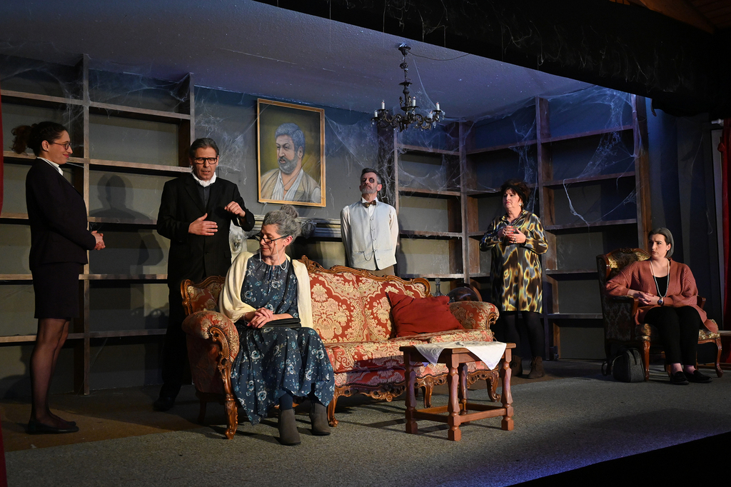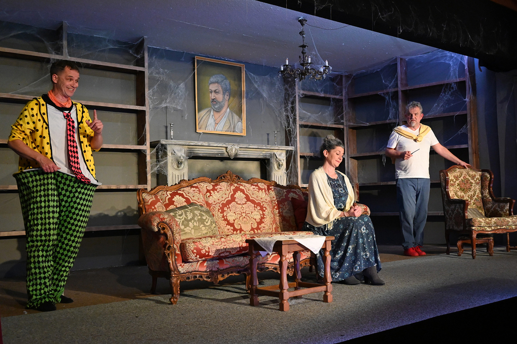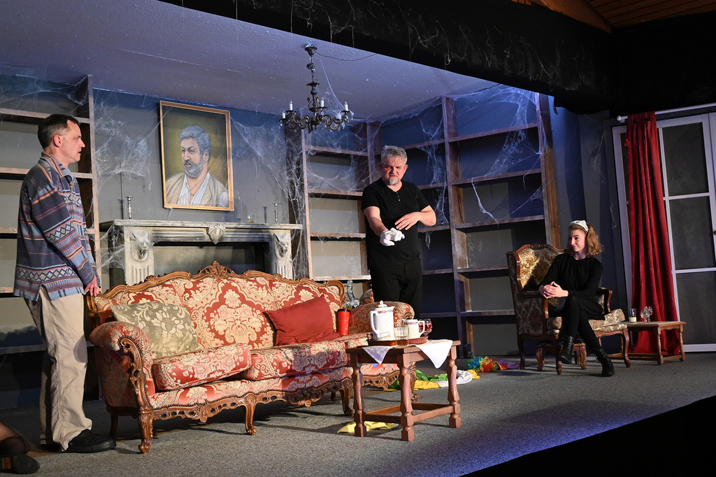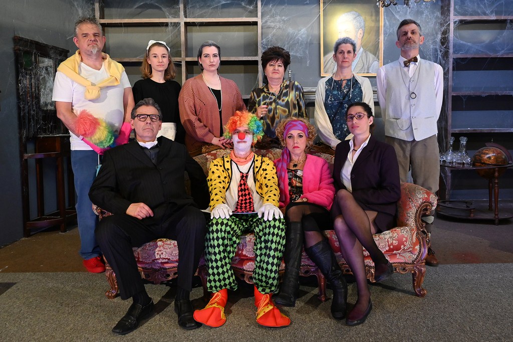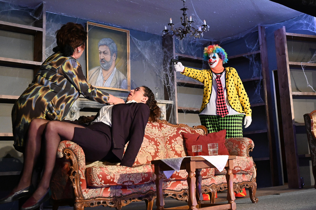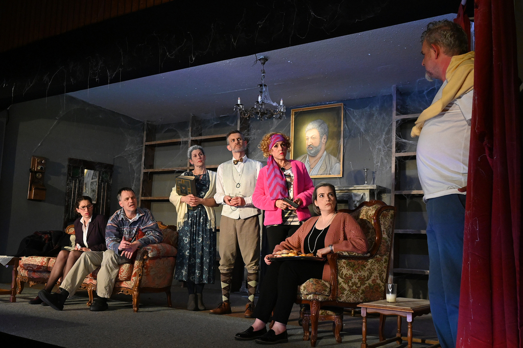 Das Stück war in den vergangenen Jahren schon häufiger in der engeren Auswahl gestanden, wir hatten aber nie genügend Schauspieler, um die 10 erforderlichen Rollen passend besetzen zu können. Da wir uns aber im Sommer 2022 dazu entschlossen hatten, ein offizielles Casting zu veranstalten, um "frisches Blut" für die Theatergruppe zu finden, konnten wir nun, mit drei neuen Spielmachern in unseren Reihen, endlich diesen großartigen Comedy-Thriller besetzen und auf die Bühne bringen. Wie schon im ersten Teil 2006 hatten wir auch dieses Mal wieder große Freude daran, die skurrilen Persönlichkeiten, überdrehten Figuren, den bösen Witz und die ausgesprochen fröhlichen und schwarzhumorigen Morde auf die Bühne zu bringen! Nach der überstandenen Corona-Pandemie konnten wir in diesem Jahr glücklicherweise auch wieder volle Bewirtung anbieten, und unser Publikum dankte es dem gesamten Spielmacher-Team jeden Abend mit begeistertem Applaus!
